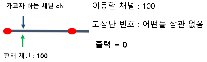 1. 이동하고 싶은 채널이 100 (채널 이동이 필요 없을 때)